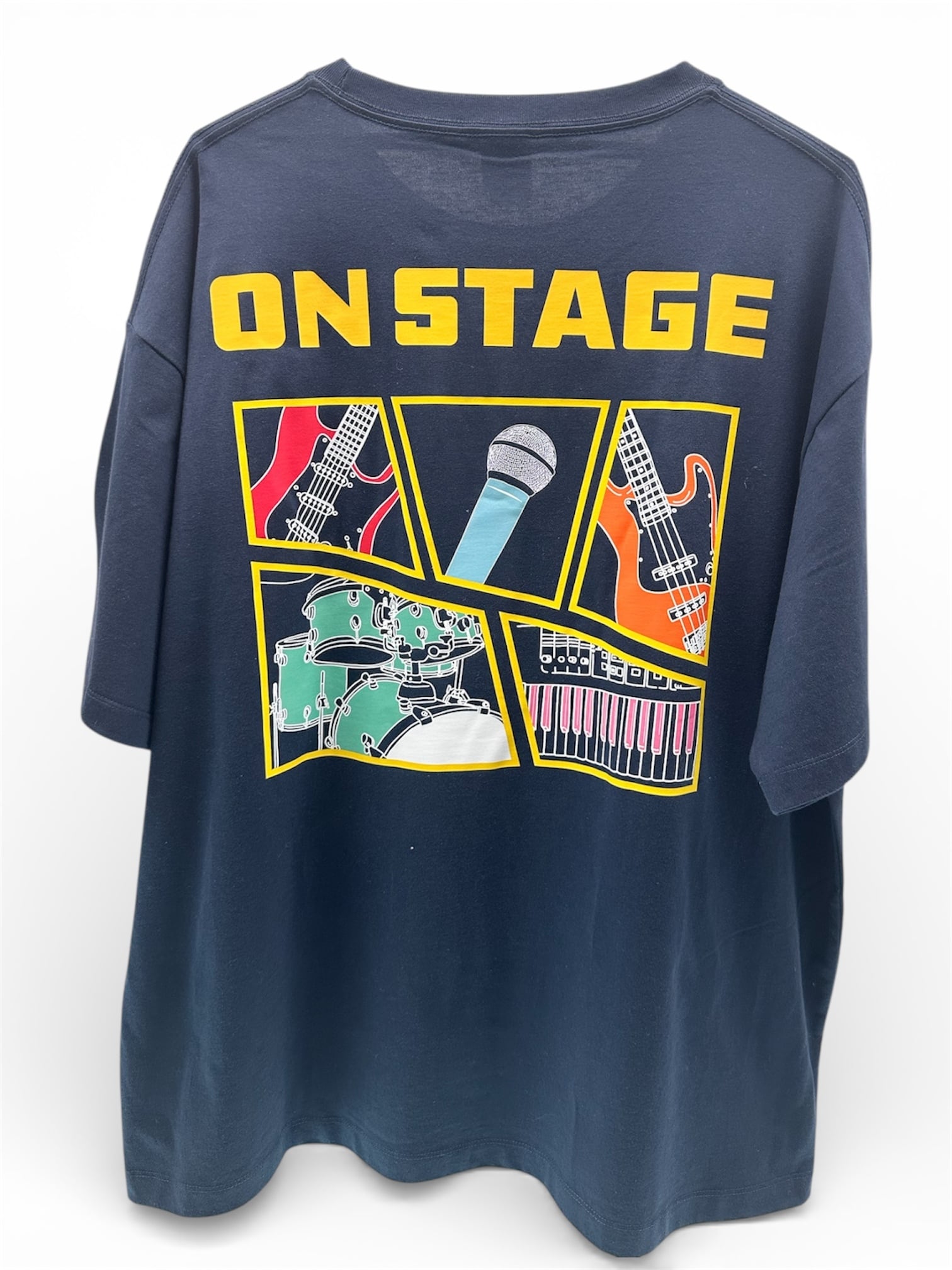 Music BAR 音STAGE 2ndの周年を記念してデザインされたTシャツ 前面はシンプルに、背面は楽器のイラストが大きく印刷されています。 カラー:ネイビー サイズ:S/M/L/XL